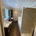 Jolie maison en pierres au calme dans un charmant village aux portes de Bayeux comprend une salle de bains avec une toilette séparée et une douche. Les salles de bains sont également dotées d'un sèche-cheveux et des draps de bain pour votre confort.